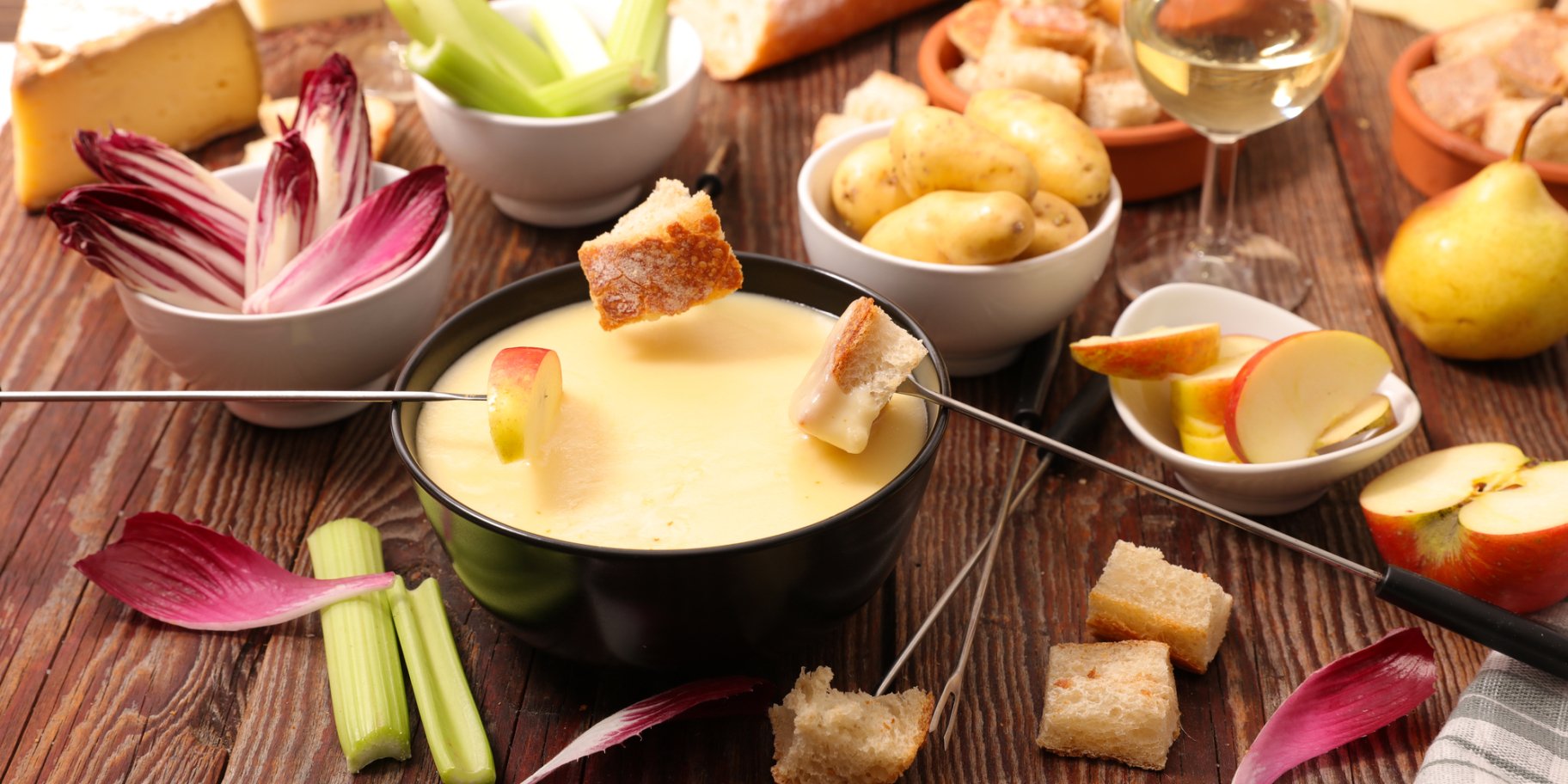 Die Basis des traditionellen Schweizer Fondues ist eine Käsemischung. Moitié-Moitié besteht zu 50 % aus Gruyère AOP und zu 50 % aus Vacherin Fribourgeois AOP – beides geschützte geografische Angaben, die nach strengen Standards hergestellt werden. Diese Käsesorten schmelzen perfekt und ergeben eine cremige, nicht flüssige Sauce mit einem intensiven, nussigen Geschmack. Ersetzen Sie sie niemals durch industriell verarbeiteten Käse – es wird kein Fondue mehr sein!